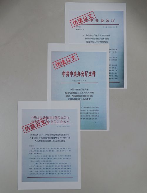 2017年10月起,郭文贵及美国媒体“华盛顿自由灯塔”多次对外公布所谓得到美国政府机构验证的中国政府“秘密文件”,如,《国务院办公厅、中央国家安全委员会办公室关于2017年度秘密增派何建峰等27名国安部人民警察赴美值勤工作方案的批复》《中共中央办公厅关于我国与朝鲜民主主义人民共和国就进一步深化解决该国核问题开展沟通协调工作的决定》《中共中央办公厅关于2017年度加强针对美国科学技术领域统战力度工作计划的批复》等,引起媒体高度关注,美国国务院也表示关注。经侦查鉴定,上述文件均系郭文贵、陈志煜、陈志恒三人伪造。