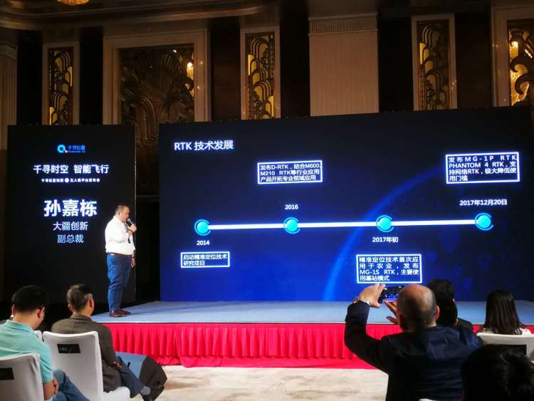 大疆创新副总裁孙嘉栋、一飞智控副总经理陈东华等合作伙伴上台介绍了他们与千寻位置的合作情况。