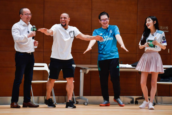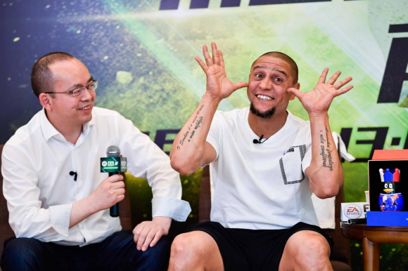 北京时间4月22日下午,巴西著名球星罗伯特·卡洛斯受邀不远万里来到中国,在腾讯新总部滨海大厦参加由《FIFA足球世界》和《FIFA Online 4》主办的体验FIFA官方唯一正版手游《FIFA足球世界》活动。在活动现场,他除了和球迷进行手游激情对决大赞游戏体验之外,还在《FIFA Online》美女主播、皇马女神洋叮叮的主持下参与了快问快答环节,回答了很多球迷们关心的问题。此外卡洛斯还在任意球挑战环节现场大秀脚法,风采不减当年。
