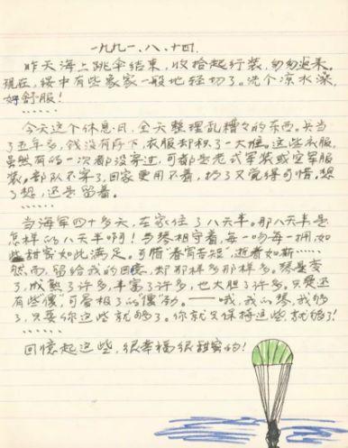 部队就要放单飞了,预定放单飞的那一天正好是我的生日,王伟以自己刻苦的努力,挤进了第一批放单飞的名单。他在给我的信中写到: