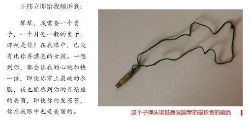 没有仪式,没有宾客,没有拖地的婚纱,更没有金银手饰,他庄重地把自己亲手做的子弹头项链挂在我的脖子上时,作为新娘的我幸福地偎依在自己心爱的丈夫怀中。我对他讲:“明月清风不要钱,要的就是你这颗心……”