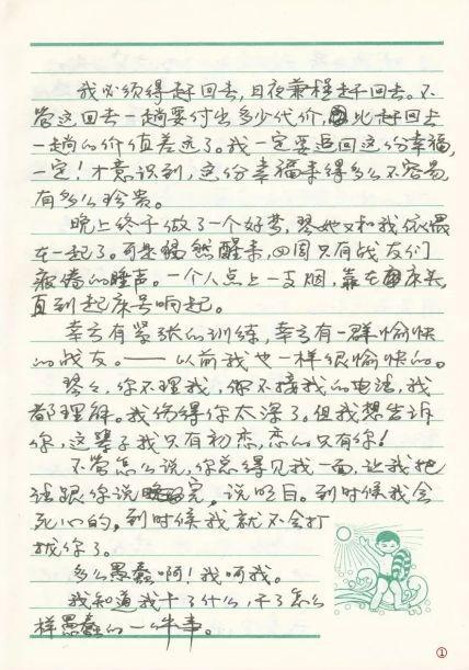 我简直不相信这是真的,我仔仔细细地又把信看了一遍,的的确确是王伟的字迹。我对王伟的字迹太熟悉了,以往,这熟悉的字体带给我的是深深的关爱和无比的幸福,而今天,同样的字迹带给我的却是深深的失望和无比的心痛!