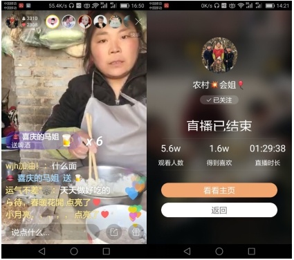 只有小学文化的会姐今年36岁,住在河南省濮阳县海通乡的一个村庄,自己有两个上小学的儿子,同时还因为弟弟离婚而负责照看弟弟家的儿子。会姐上传的700多个短视频作品里,大多都是会姐在地锅做饭,锅台边上围着三个紧盯菜锅的小男孩。会姐的饭菜做好后,会“老大的、老二的、老三的”依次盛上饭菜,那场景极其温暖、温馨。会姐做的饭菜几乎每天都不重样,除了应时应季的饭菜,会姐有时还根据直播间里用户的需求做出对方想学习的饭菜。会姐一个多小时的直播,经常会有五万六万的观看人数,其中三分之一的人会以点赞的形式表达对会姐的喜欢。