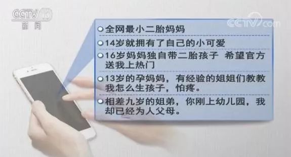 3月31日,央视《新闻直播间》报道称,为博取关注,短视频平台将大量未成年人怀孕生子视频置于推荐首页,恋爱、怀孕、生子等现实生活中未成年人的禁忌,在网络直播中无所顾忌:
