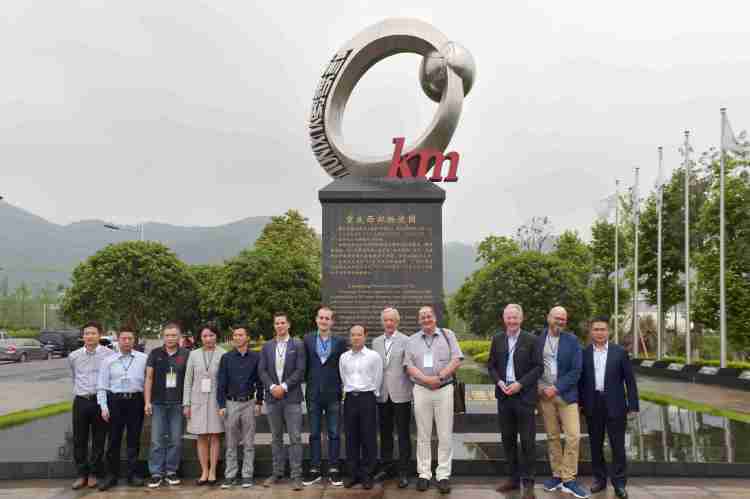 2018年4月23日,”2018感知重庆·德国企业家重庆行“活动启幕,德国企业家考察西部物流园,在零公里地标处合影。 游宇摄影