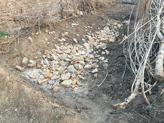 另一次是2017年,崔向会家门口扩建,剩余的石头堆在街上的水沟口,下大雨没法正常排水。门口扩建,崔向会家没处放草垛,想把草垛堆在水沟旁。