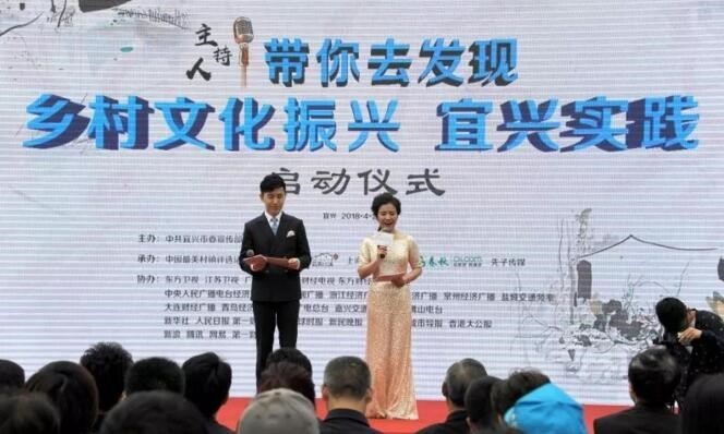 4月26号,以“主持人带你去发现:乡村文化振兴宜兴实践”为主题,由全国知名主持人、作家、记者、摄影师、专家型意见领袖参与的发现、采风、调研活动,在20多位主持人同台演唱的《龙山坳》村歌中拉开序幕。此次活动由宜兴市委宣传部、第一财经联合主办。