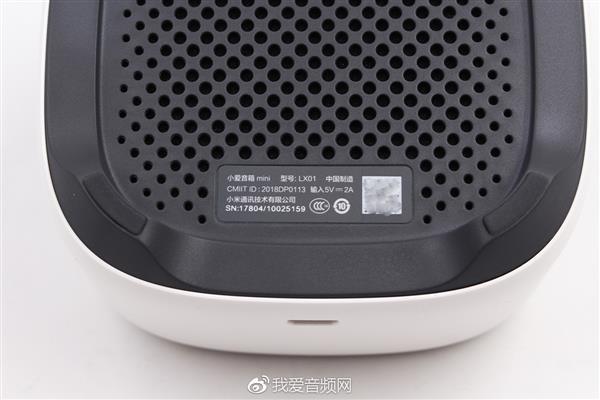 小爱音箱mini的型号为LX01。供电方面,输入5V 2A(10W),这也是如今最常见的一种供电规格,一般的手机充电器均能正常给其供电。