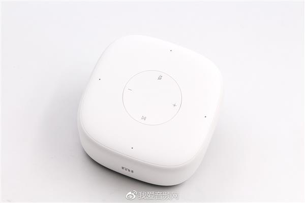 小爱音箱mini给小编的第一印象就是简约、时尚,正面仅有四颗控制按键和四个拾音孔,RGB多色状态指示灯可以透过上盖显示。