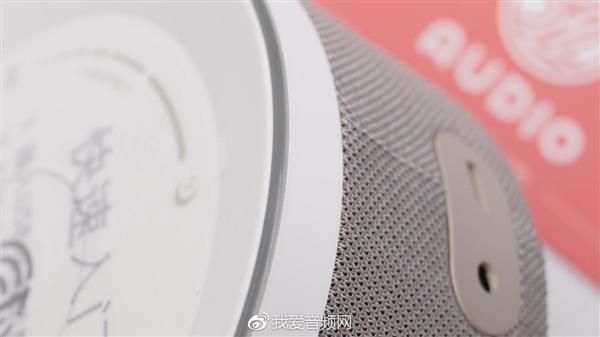 叮咚TOP的侧面和我爱音频网之前拆解的天猫精灵智能音箱相似,都采用网布设计,同时将音箱的扬声器隐藏其中,让产品拥有不错的整体性。接口方面,叮咚TOP采用的是Micro USB供电接口,另外还有一个3.5mm Line out接口。