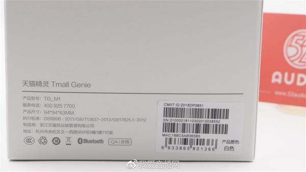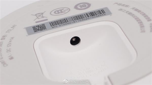 在背面印着产品的详细信息。产品型号为TG-M1,制造商为:由浙江天猫供应链管理有限公司,我爱音频网此次拆解的是白色款。