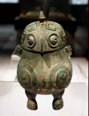 鸮卣 商代 高19.7厘米,口长径12厘米,短径8.6厘米,1956年石楼县二郎坡村出土,现藏于山西博物院