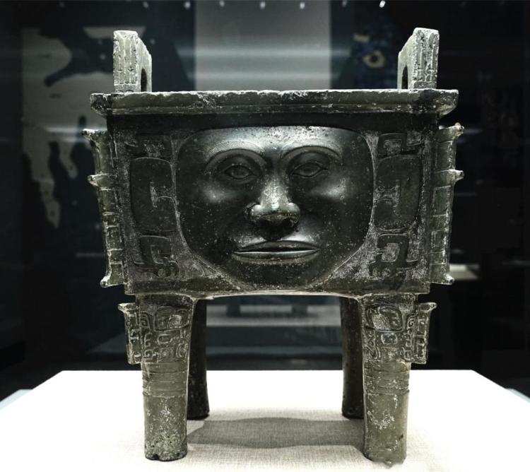 大禾人面纹方鼎 商代 高38.5厘米 长29.8厘米 宽23.7厘米。约1958—1959年出土于湖南宁乡县黄材镇炭河里乡,现藏于湖南省博物馆