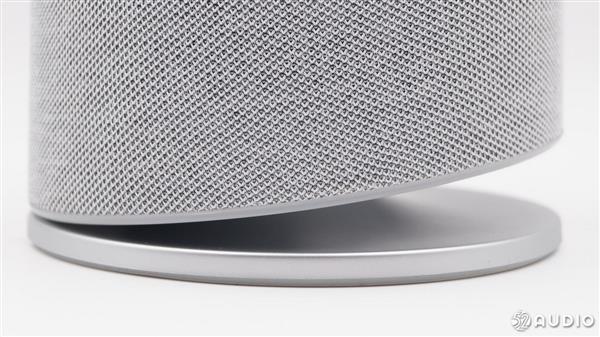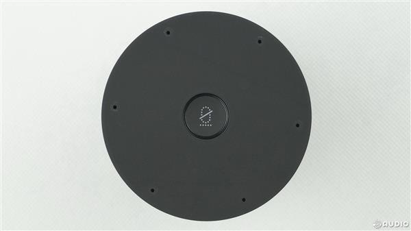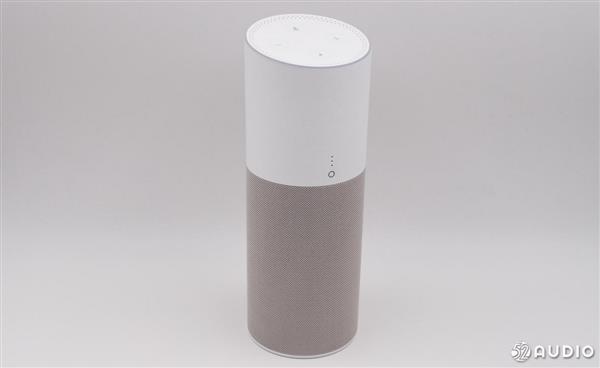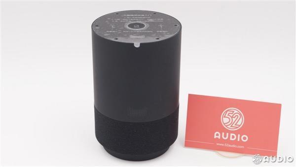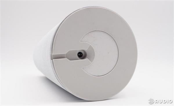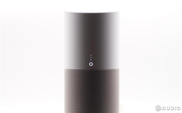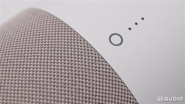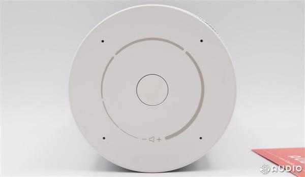 音箱顶部是操作区域,操作面板带有10�的倾斜角,这样的设计是出于方便操作的角度考虑。从上往下依次是静音键、音量加/减键,留言功能键,四周的环形开孔是6个阵列麦克风。官方称,该部分涂料源自瑞典,可有效减少触摸痕迹。最外围是氛围灯,带有多种颜色,主要用于不同状态的提示。