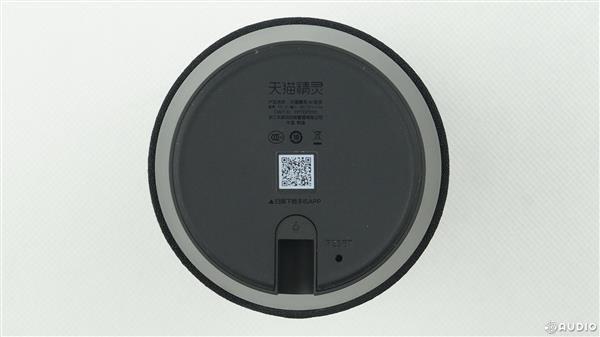 天猫精灵主体外壳材质为工程塑料,环绕在位于中下部深黑色部分是音箱的防尘网布,最下方略细的是音箱底座。