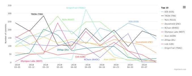 图:近3个月区块链项目代码更新活跃度Top 10 (来源:CryptoMiso)