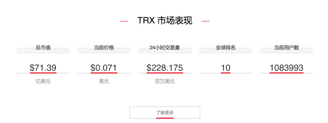 官网2.0版本的更新,主要集中在了项目进展和实时动态发布两部分。一方面在加强实用的基础上,再次优化了时效性;一方面,还增加了“TRX 市场表现”一栏,让用户可随时观察TRX的全球排名及动态,实时展示TRON在全球数字交易平台的风貌。