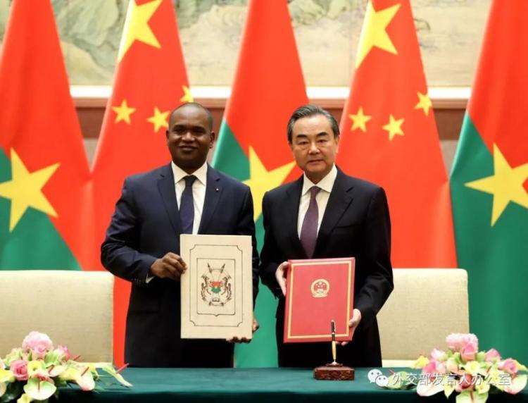 5月26日下午,国务委员兼外交部长王毅在北京同布基纳法索外长巴里举行会谈并签署《中华人民共和国与布基纳法索关于恢复外交关系的联合公报》。