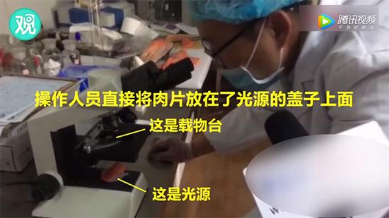 更尴尬的是,记者也跟着看了看显微镜,在画外音传来“这样可以看得很清楚”时,他也并没有对“检测”提出任何质疑。