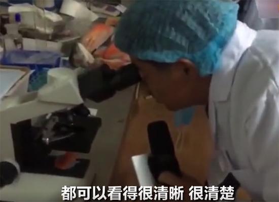 在这则被广泛传播的10秒钟片段中,工作人员声称要用显微镜检测鱼肉切片中是否有寄生虫……