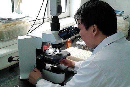 聊到显微镜检测时,工作人员进行了演示,并说“我们会用刀切成很薄的片儿,放到盖玻片上,然后放到显微镜下面……”