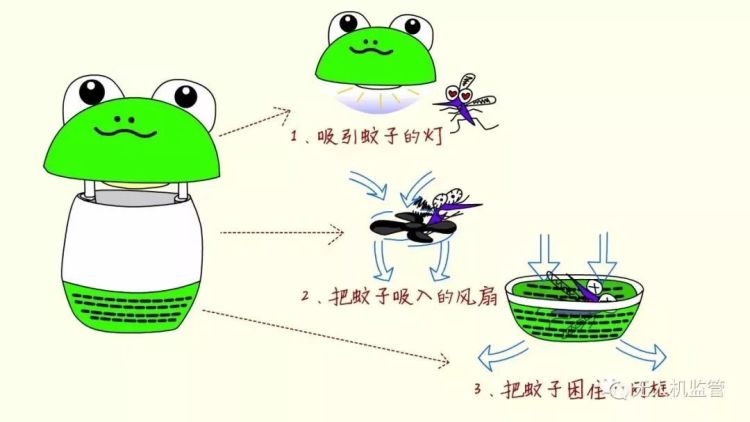原理就是通过灯光吸引,用风扇把蚊子吸到盒子里,困住的蚊子最后就吹死了。
