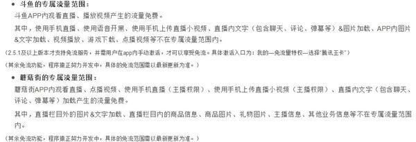 中国联通和腾讯合作推出的腾讯王卡(包括大王卡、地王卡、天王卡不同档位)也存在类似规定,尽管宣称“超100款应用免流量”“告别Wifi,想用就用”,位于介绍页底部的专属流量说明显示,APP上第三方提供的网页、视频等服务,例如手机新闻网、搜狗、百度、爱奇艺视频、携程、京东等非腾讯业务都无法使用专属流量。除此之外,多款直播APP的免流范围仅限观看直播、播放视频,而使用手机直播、上传视频、直播内文字和图片的加载、点播视频则不在专属流量范围内。