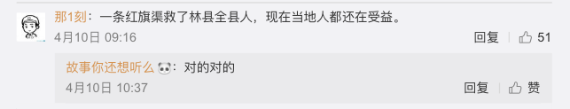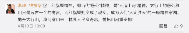 毛主席对兴修水利的杨贵给予莫大赞许。周总理盛赞红旗渠为“新中国有两大奇迹,一个是南京长江大桥,一个是林县红旗渠!”习近平总书记称赞:“红旗渠精神是我们党的性质和宗旨的集中体现,历久弥新,永远不会过时。”