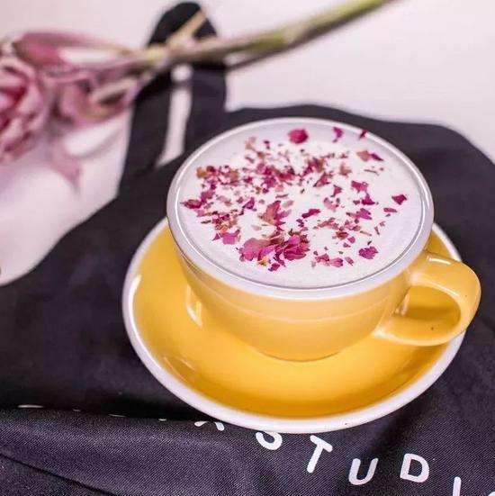 丰富又细碎的玫瑰花瓣撒在温热的牛奶上,一口满足。