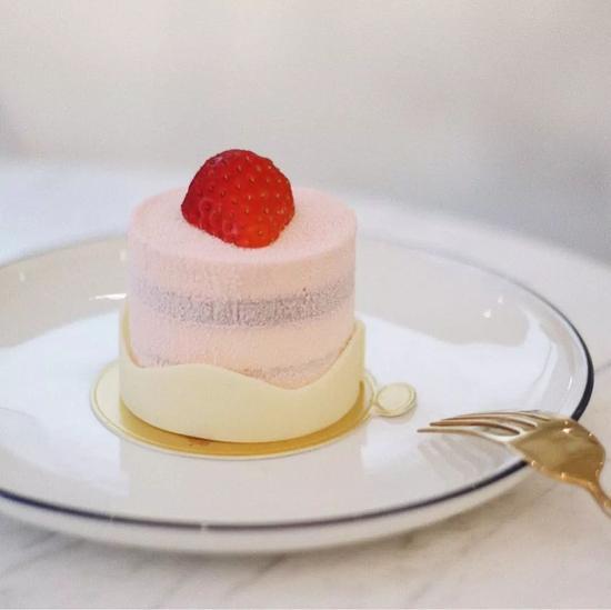 新鲜的覆盆子果酱+玫瑰慕斯+荔枝库力+玫瑰芝士蛋糕,配上薄脆饼底,简直满足。