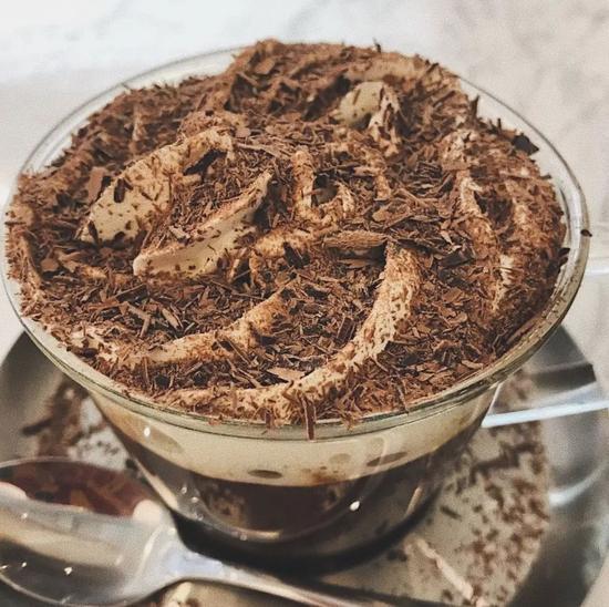 微苦的咖啡搭配半融的巧克力,搭配绵软香甜的奶盖,苦中一丝甜味,刚刚好。