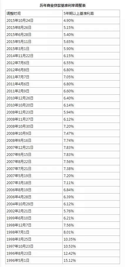 融360整理的一份历年商业贷款基准利率调整情况显示,目前的基准利率4.9%处于历史低位,即便在此基础上上浮20%,也才相当于2015年的基准利率。