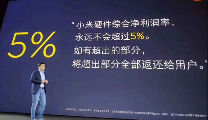 其中在高性价比之路上,在4月25日召开的小米6X发布会上,小米董事长雷军表示:即日起,小米向用户承诺,小米硬件的综合税后净利润率不超过5%;超出的部分将全部返还给小米用户。这是小米在IPO前,给消费者的庄严承诺。小米有底气、不怕IPO后,消费者通过财报“审查”小米承诺的执行情况。