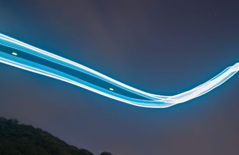 所谓的光绘摄影,就是利用相机的长曝光功能可以记录下光源的移动痕迹,相机曝光的这一特性,让摄影在创意领域,有了更多创作的可能性。而无人机光绘,则是利用无人机自身臂灯发光特性或者搭载相关发光配件,来绘制发光的路径,特点是轨迹不受距离限制,在天空中可以绘制大范围的图案和线条。