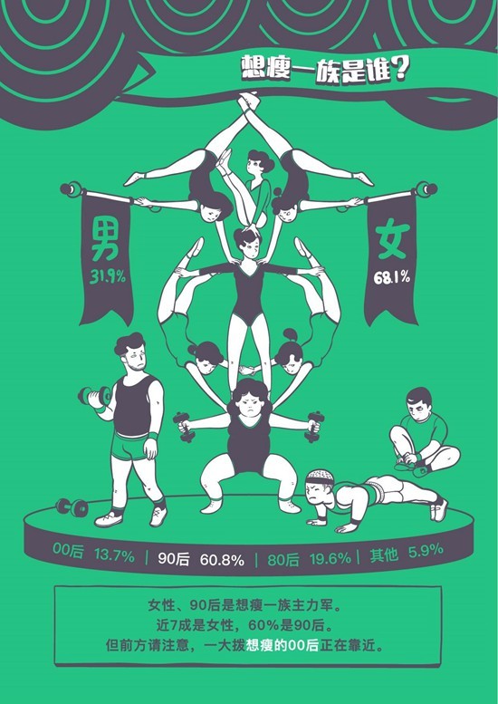 尽管“瘦”并非这个时代唯一的美,但“想瘦”的确是当下社会的一种潮流和生活态度。当我们对TA们投注更多关注之时,一个被称为“想瘦一族”新兴群体的轮廓也开始变得更加清晰。
