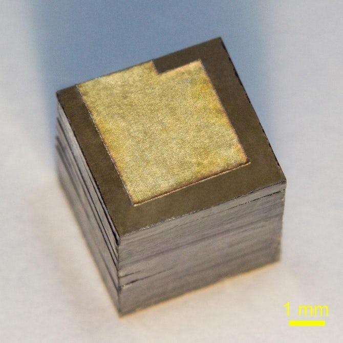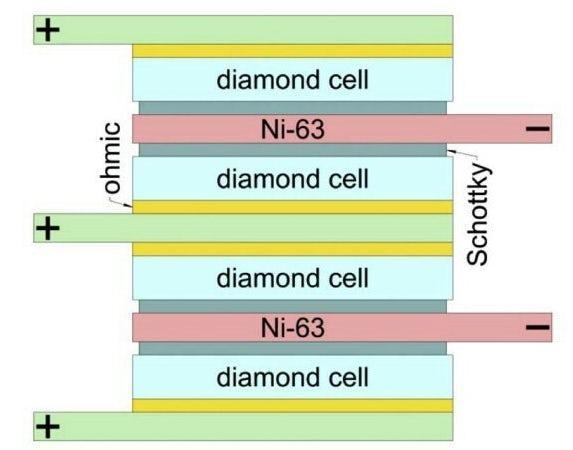该放射性同位素的半衰期超过了 100 年,研究团队设计了一种崭新的布局,以提升电池的功率密度。他们确定,如果将它包裹在 10 μm 厚的三明治结构中,镍-63的最有效层厚度为 2 μm 。