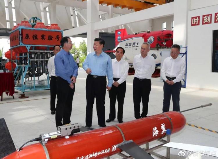 △ 2018年4月12日下午,习近平考察中科院深海所并与“深海勇士”号载人潜水器设计师和深潜团队亲切交谈