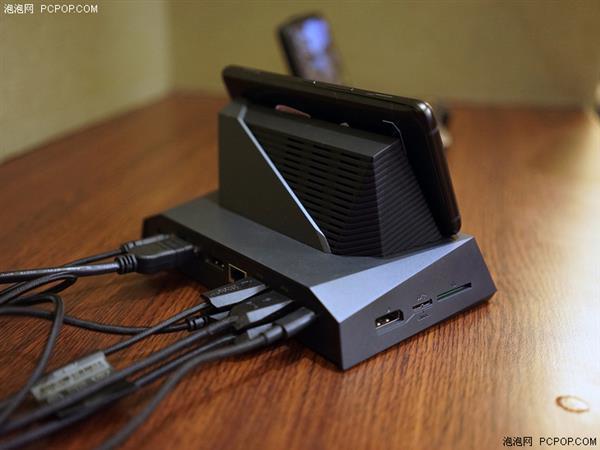 ROG Phone有4种外设:风冷散热器、手柄、屏幕扩展坞和桌面拓展坞。 屏幕扩展坞可以把手机变成一个微型“游戏本”。桌面拓展坞可以把手机画面输出到显示器上,并允许键鼠操作。