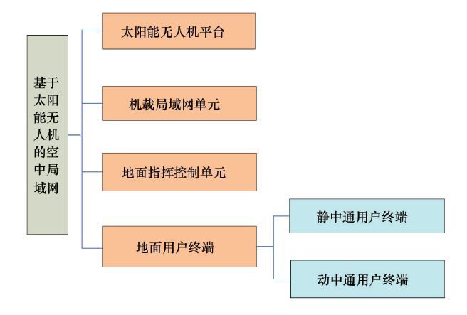 基于太阳能无人机的空中局域网由太阳能无人机平台、机载局域网单元、地面指挥控制单元和地面用户终端组成(图3)。其中地面用户终端根据用户类型分为静中通和动中通用户终端。