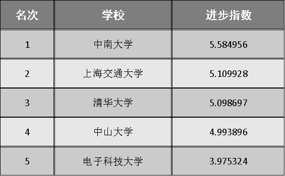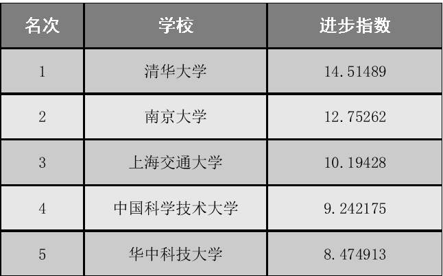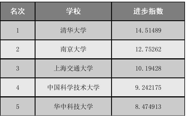 中国大学进步排行榜(一年版)