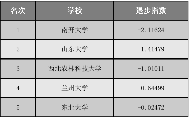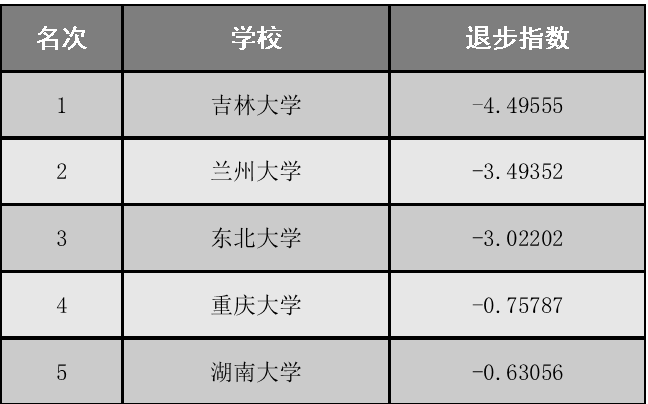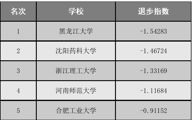 中国大学退步排行榜(一年版)
