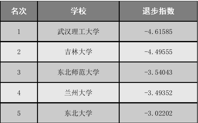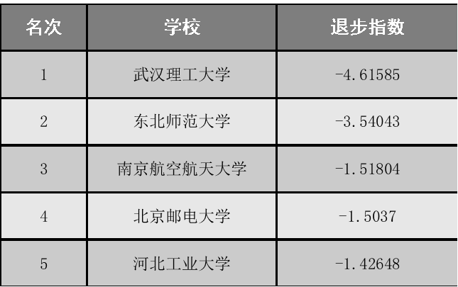 211大学退步排行榜(一年版)