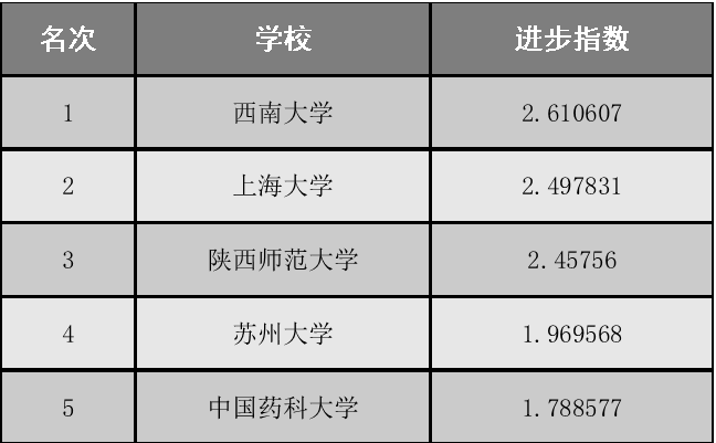 211大学进步排行榜(一年版)