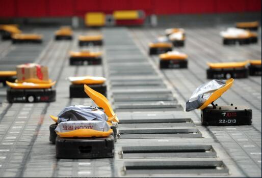 快递分拣机器人使用前,快递小件在传送带通过人工分拣操作,由于体积较小、面单不易区分等原因,人工操作量大,易视觉疲劳,作业效率有限。“目前,我们济南分拣中心共投入350台分拣机器人,多的时候每天可分拣数十万商品。在京东智慧物流的控制下,他们可以做到自动充电5分钟,连续工作4个小时,分拣准确率高达100%。”京东物流山东分公司分拣负责人王付良介绍道。