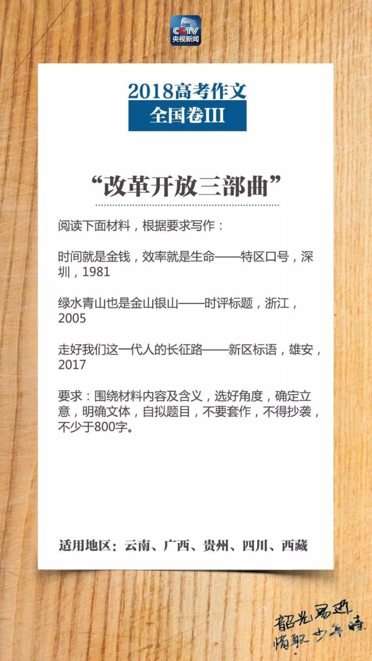 2018年全国卷III 适用地区:云南、广西、贵州、四川、西藏。