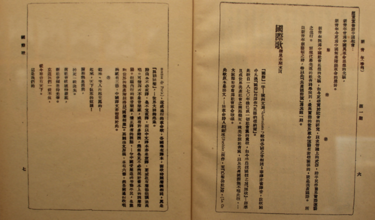 1923年,瞿秋白从苏联回国,担任《新青年》主编。他在苏联出席了第九次全俄苏维埃大会,见到了列宁。在那个新生的社会主义国家里,他受到了蓬勃发展的各项事业和革命精神的鼓舞。瞿秋白下定决心,要让《国际歌》的中译版在中国广泛流传,成为中国无产阶级革命的一首战歌。当年6月15日,他翻译的中文版《国际歌》发表在《新青年》上。