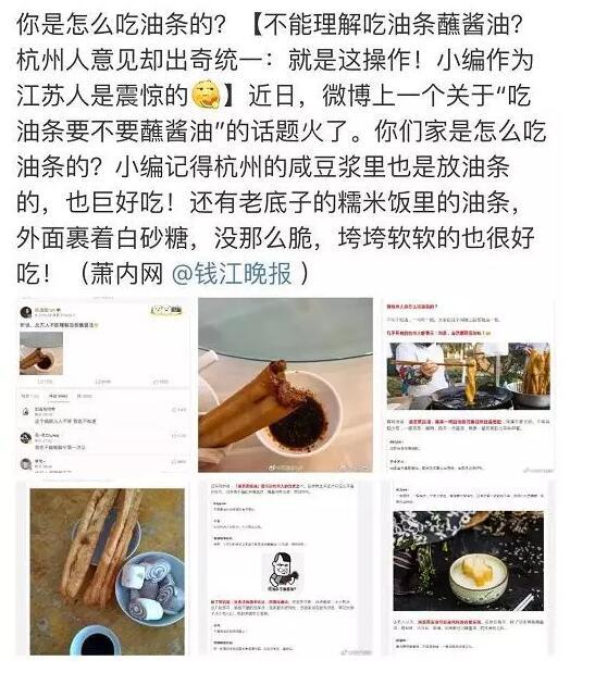 微博上一个关于“吃油条要不要蘸酱油”的话题火了。