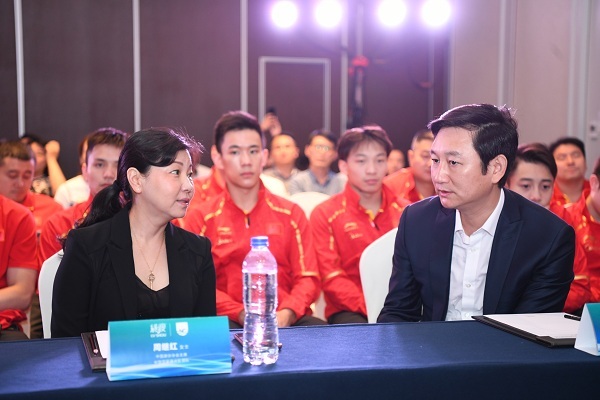 中国游泳协会主席、中国跳水队领队周继红携施廷懋、任茜、陈艾森、曹缘等一众国家跳水队运动健儿以及他们的教练悉数亮相发布会,绿瘦集团董事长皮涛涛、绿瘦集团副总裁王燕、中体产业集团副总裁陈世虎、绿瘦品牌战略合作伙伴阳狮沟通传播副总经理苏日良共同出席本次合作发布会。