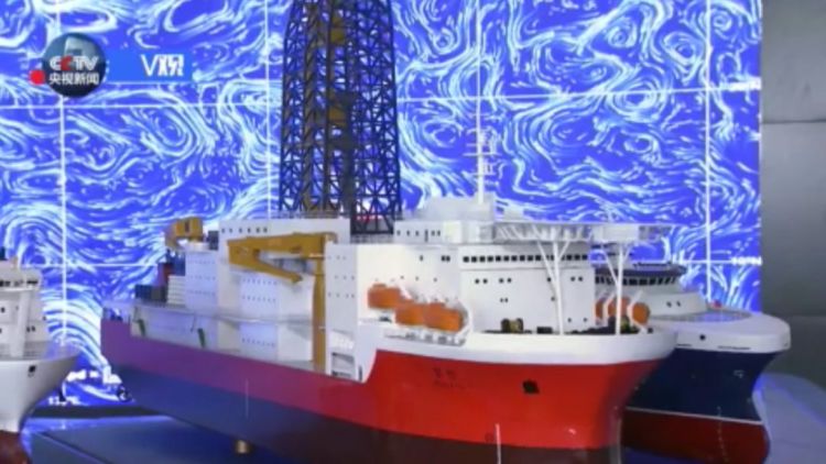 △正在建造的大洋钻探船“梦想号”(模型)