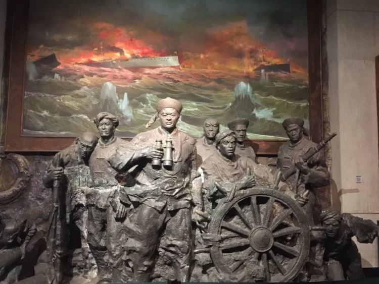 他走进甲午战争博物馆陈列馆。历史在这里沉思。